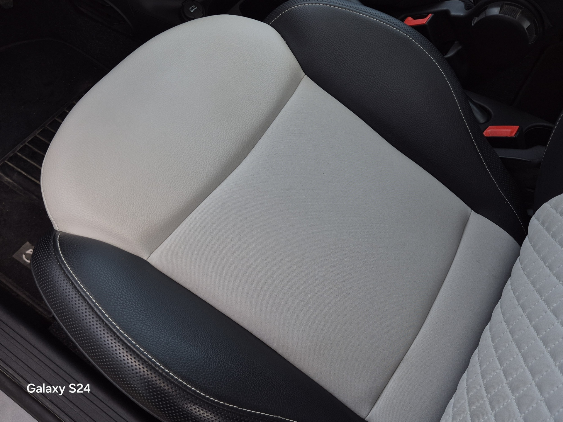 . Zwart-wit stof/lederen bekleding (lekker stijlvol!)